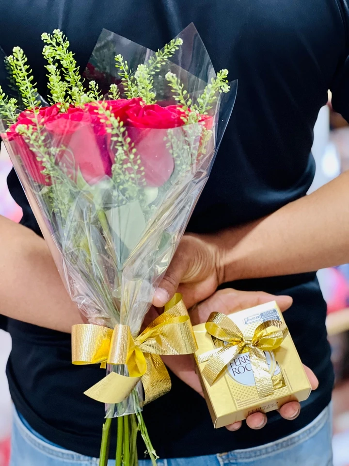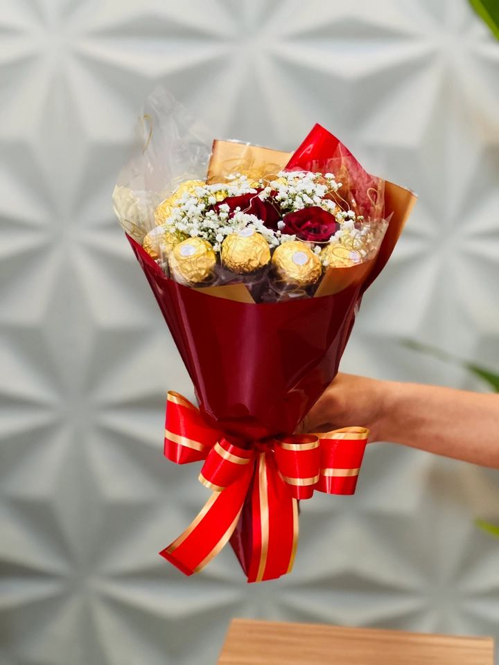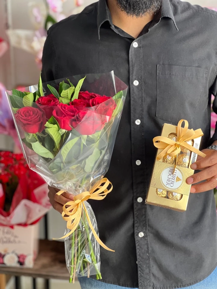 Buquê Minimalista com 8 Rosas e Ferrero Rocher T4