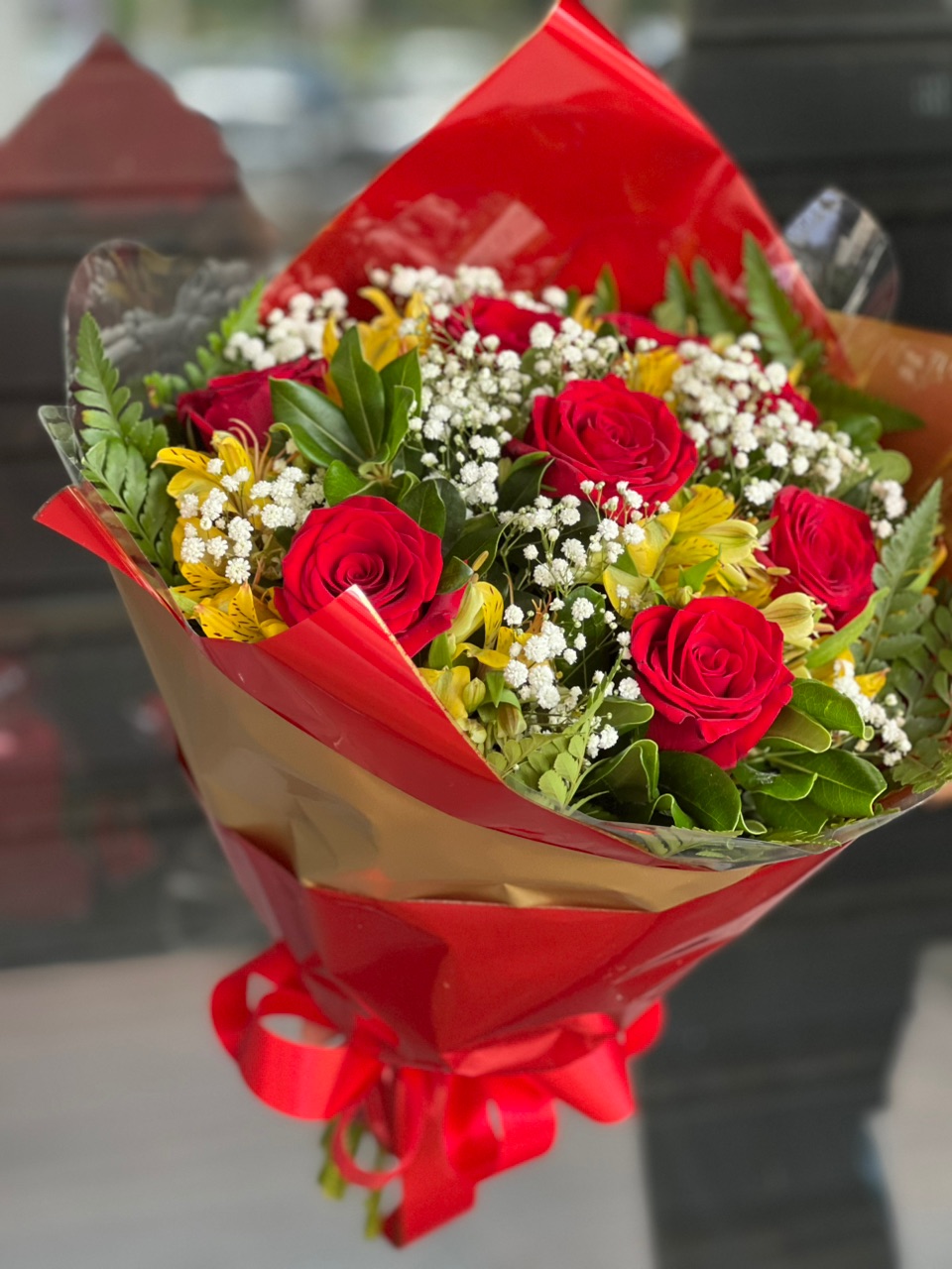 A combinação perfeita entre o clássico e o encantador: 12 rosas frescas acompanhadas de delicadas alstroemélias. Um buquê tradicional, ideal para aniversários, datas românticas ou para demonstrar carinho com elegância. Entrega rápida e segura em Brasília.