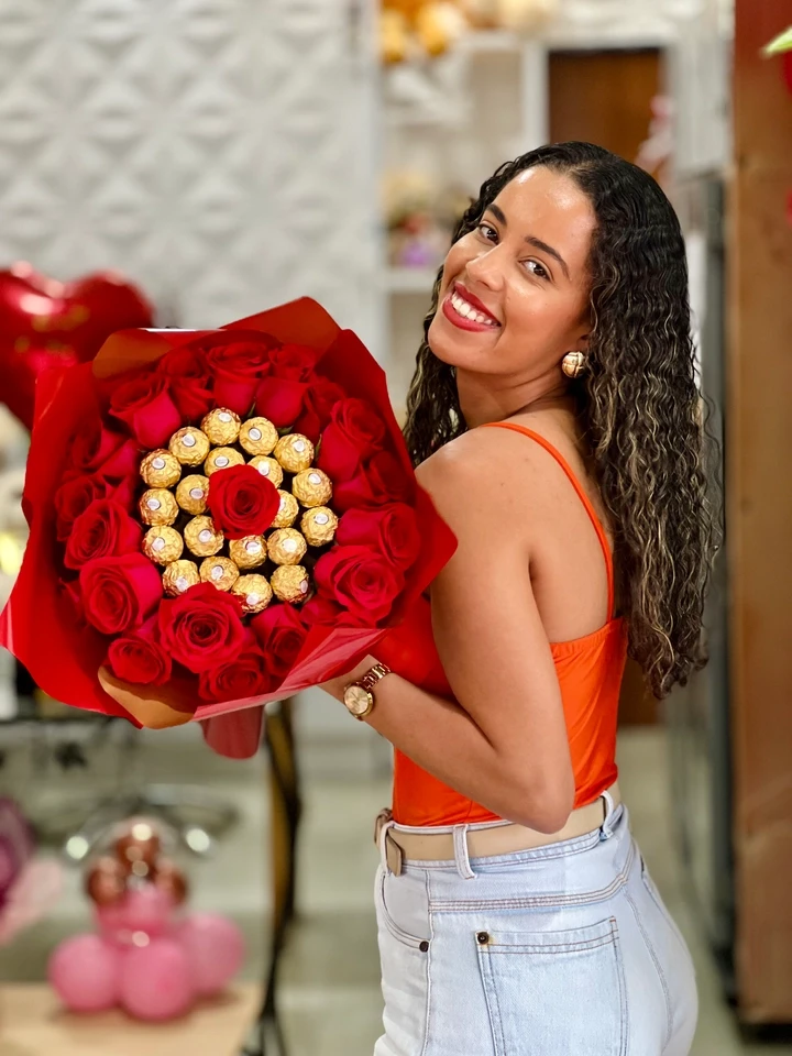 Buquê de Rosas Vermelhas com Ferrero Rocher G – Amor em Grande Estilo