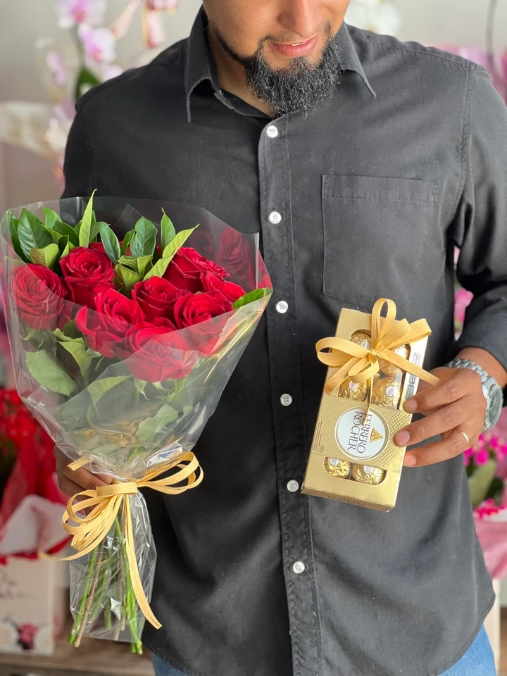 Nosso combo especial de buquê de rosas vermelhas e chocolates Ferrero Rocher é a escolha perfeita para mostrar todo o seu carinho.