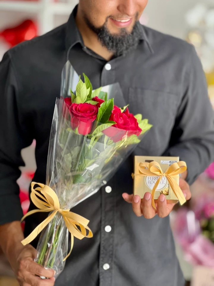 Nosso combo especial de buquê de rosas vermelhas e chocolates Ferrero Rocher é a escolha perfeita para mostrar todo o seu carinho.